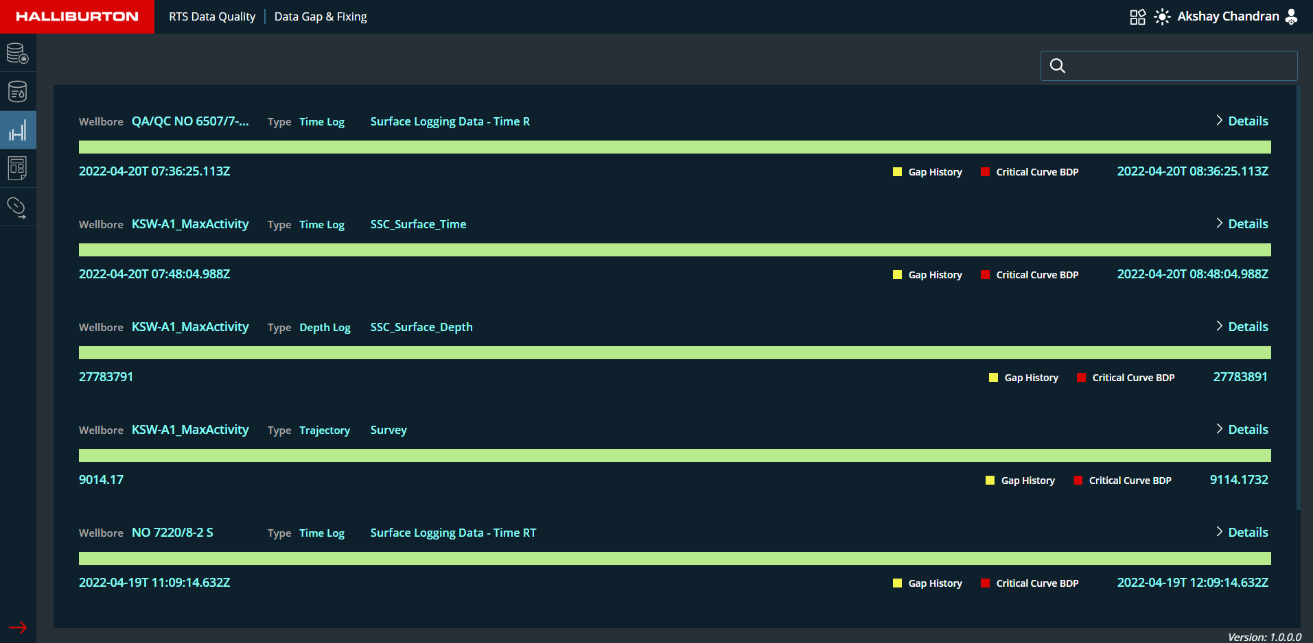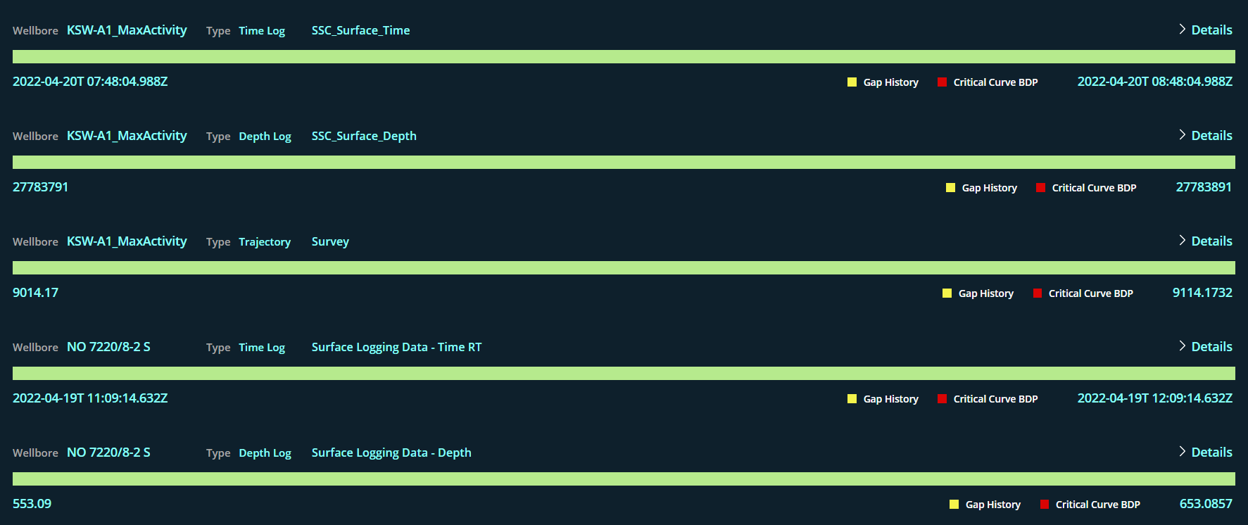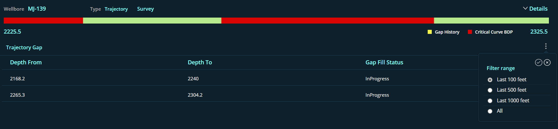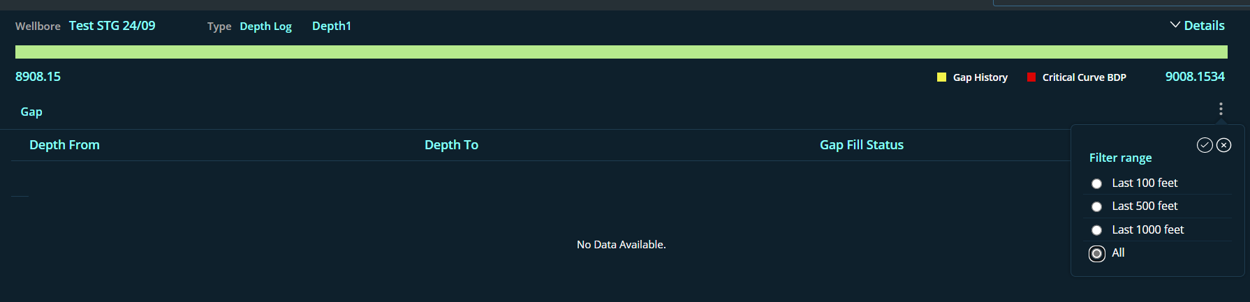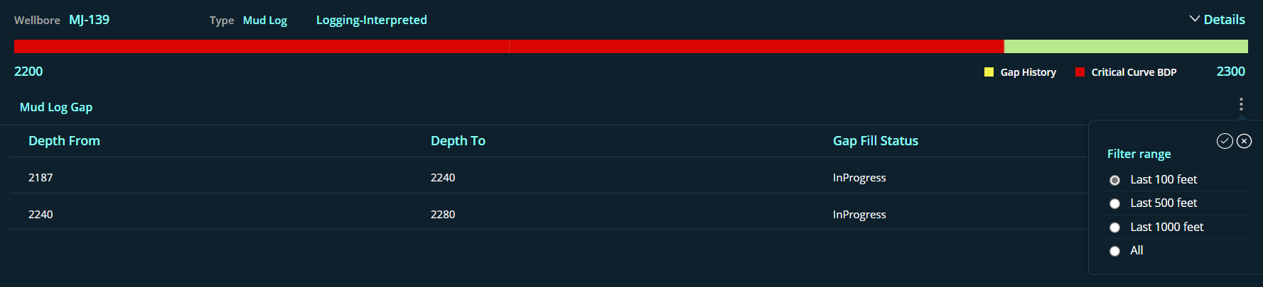 This column will display the data Gap fill status with count of each wellbore to be