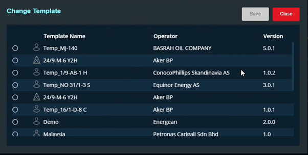 Initially, the dropdown list would only show service provider templates. When a wellbore-specific template is created, it will appear in the list.